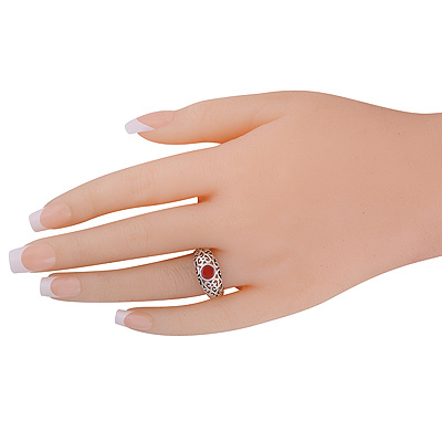 Alluring Handcrafted Jali Work Around Carnelian Round Shape 925 Sterling Solid Silver Ring